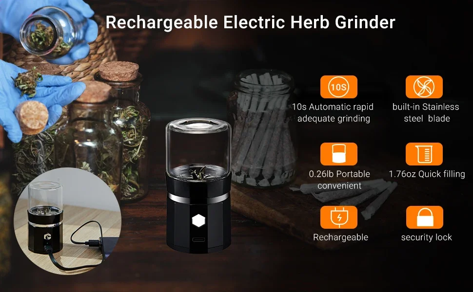 The High Qulity LTQ Electric Herb Grinder is a must-have for the modern smoker. Designed with a sleek stainless steel exterior and a durable PC+Glass body, this grinder is not only stylish but also built to last. Its compact size of 50*100mm and lightweight build of just 115g make it an ideal travel companion, ensuring that you can enjoy freshly ground herbs wherever you go. The included charging cable and brush make maintenance a breeze, while the gift box adds a touch of elegance to your gift-giving experience.