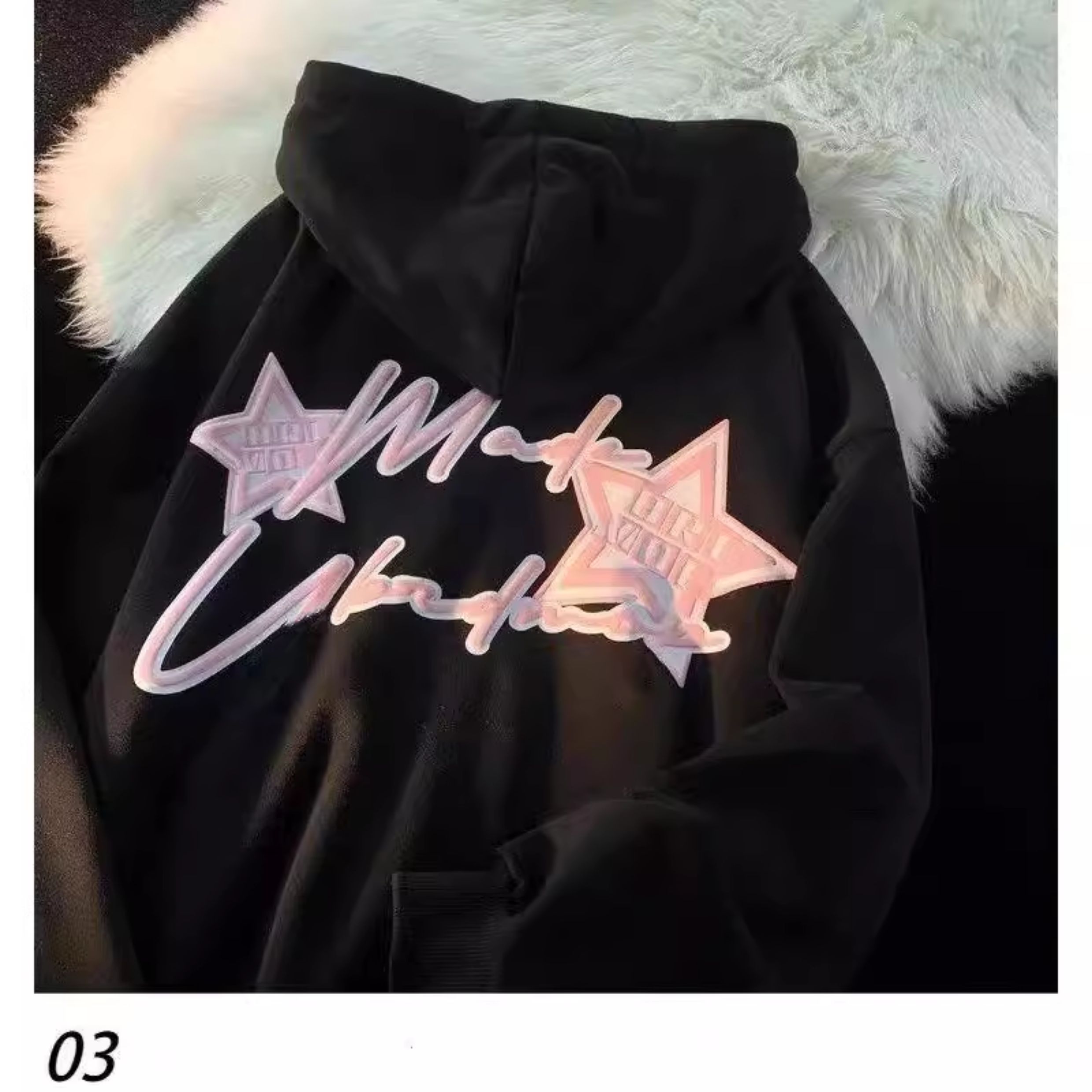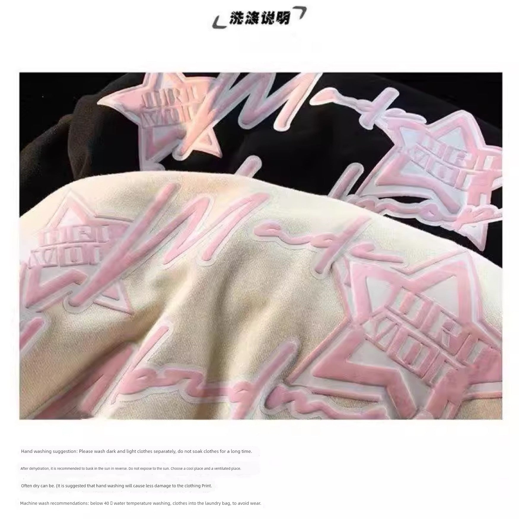 American Fried Street Star Letters Yabi Culture Patchwork Cardigan Sweatshirt Female Spring & Fall Y2g Sweet Cool Style Baggy Coat