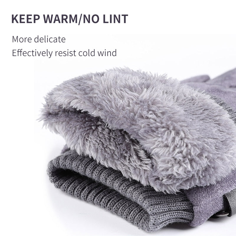 Men's Winter Gloves Suede Warm Split Finger Gloves Outdoor Sport Driving Buckle Design Male Touch Screen Mittens