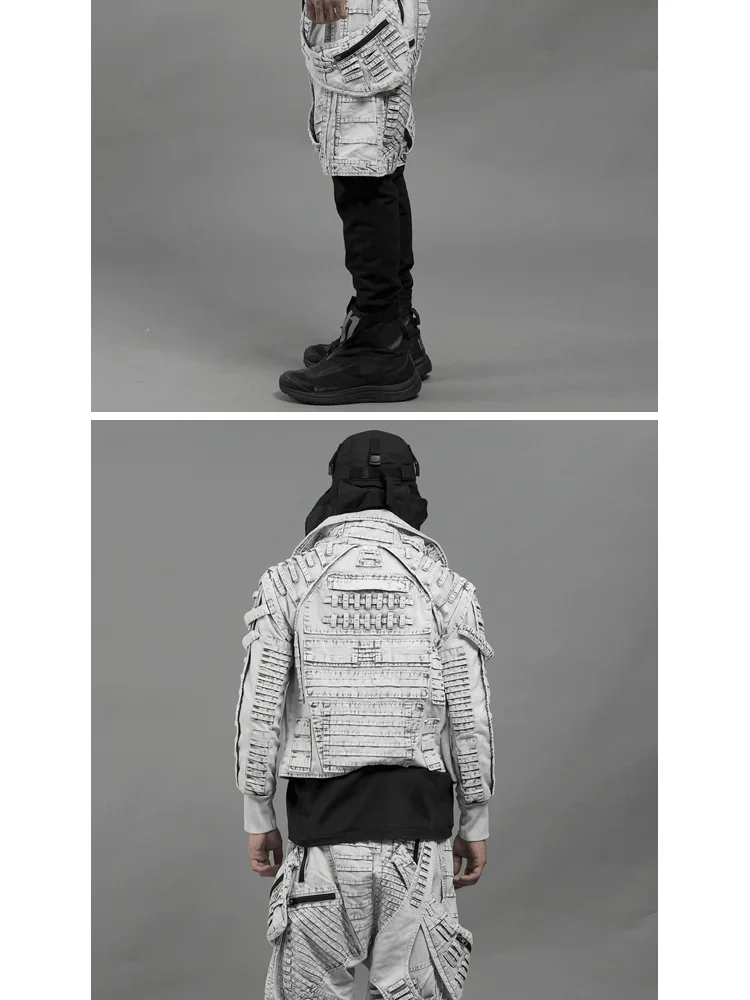 Waste Soil Sand Dune Style Men's Asymmetry Slim Fit Motorcycle Jacket Washed Distressed Fold Deconstruction Coat Male