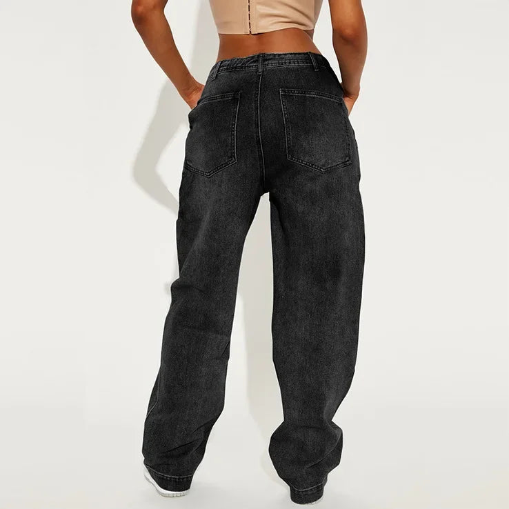 Y2k American Retro Fashion Women High Waist Cartoon Printed Jeans High Street Design Slim Casual Straight Wide-Leg Jeans