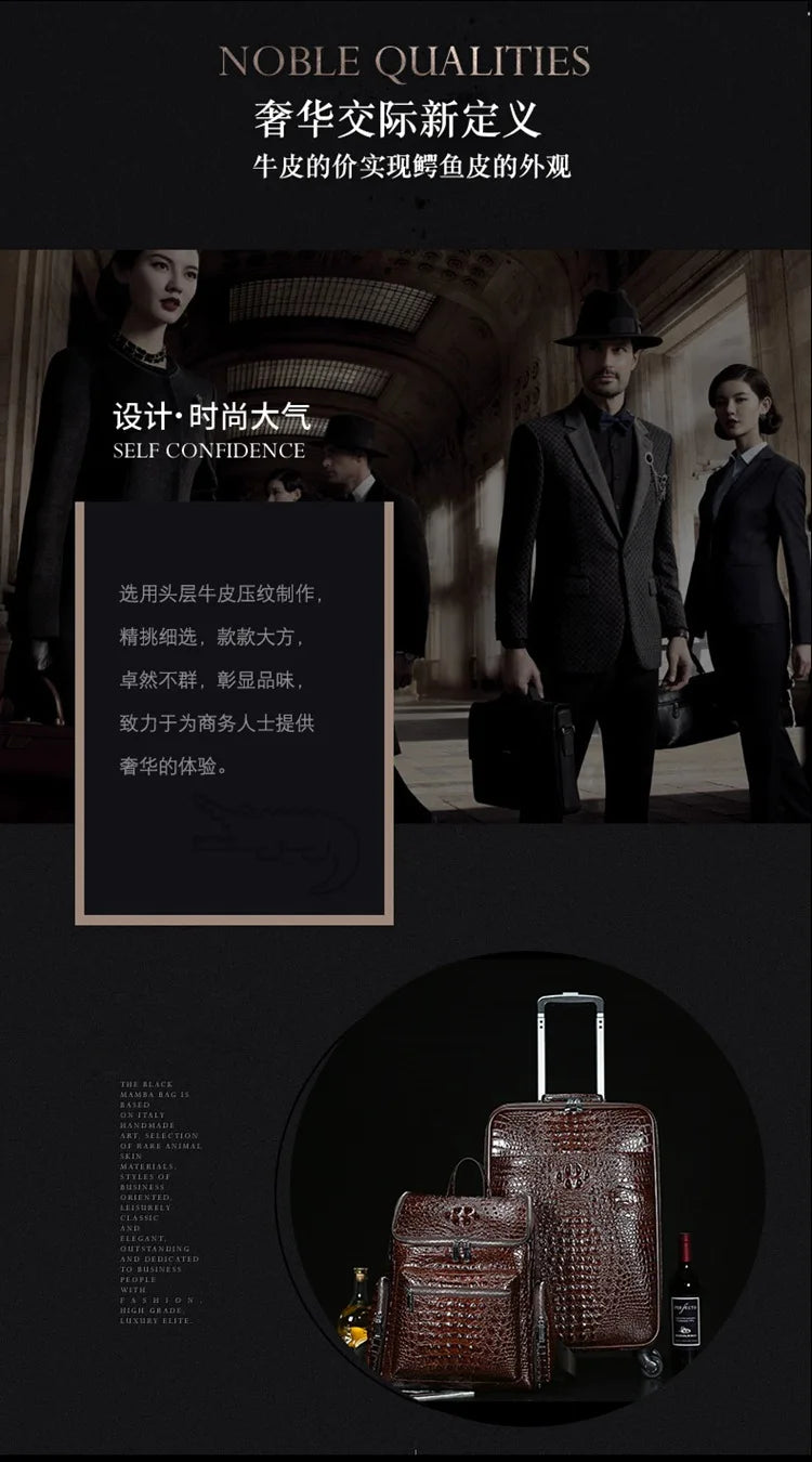 Genuine Leather crocodile pattern travel luggage with handbag backpack men's first layer cowhide trolley suitcase boarding case