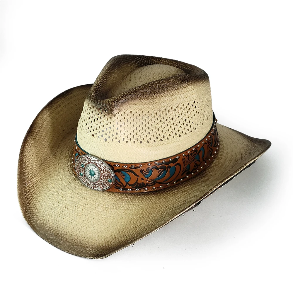 2025 Pentagram Retro Straw Hat for Women Men Curled Edge Vintage Western Cowboy Hat Summer Beach Sun Hat Sombrero Hombre
