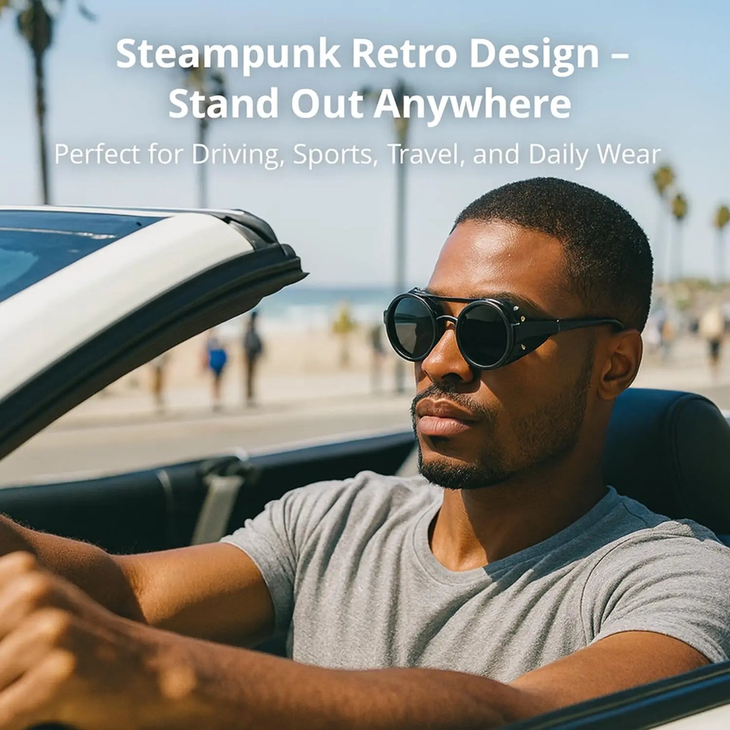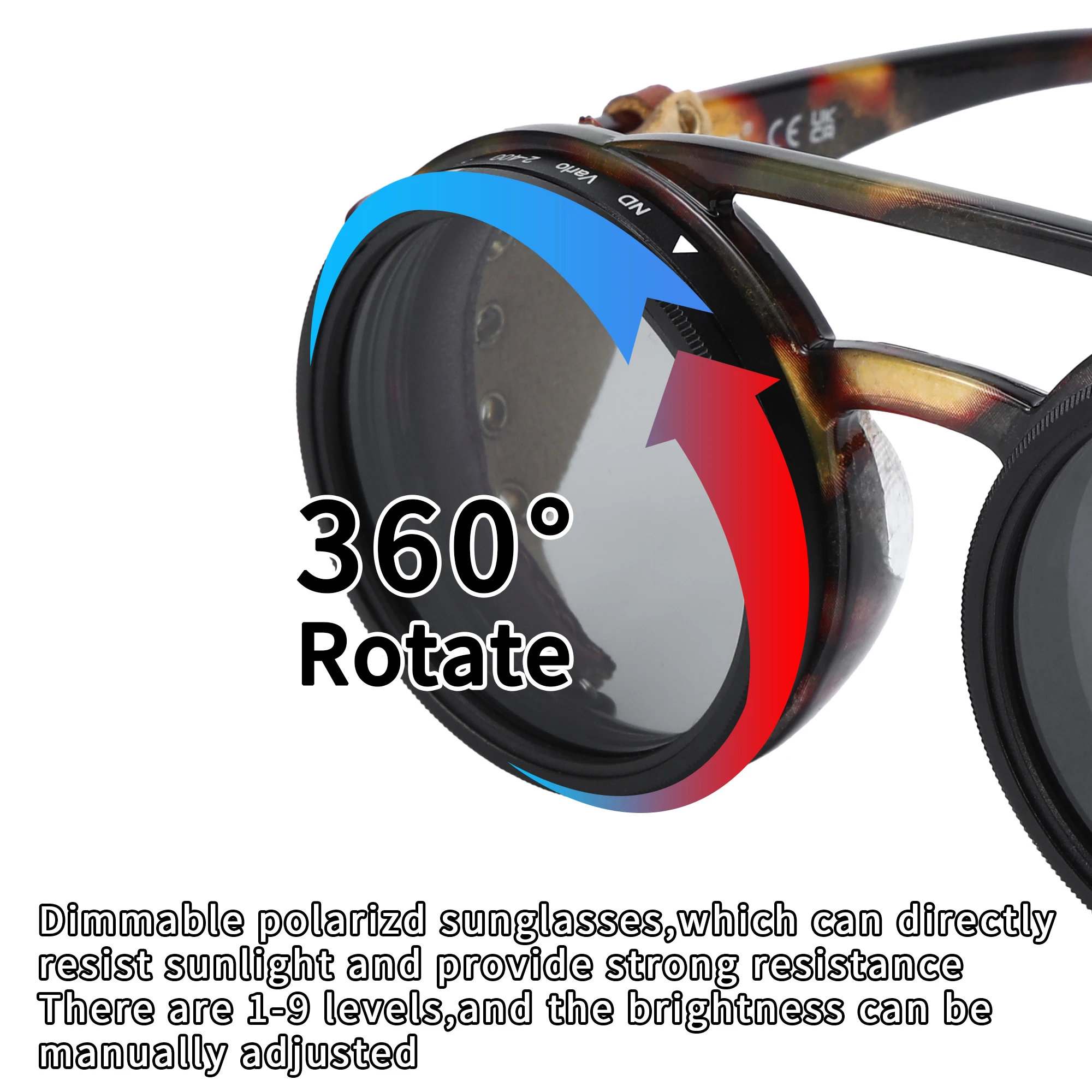 ND9 adjustable dimming sunglasses Retro Punk round men's outdoor fishing UV400 polarized driving sunglasses