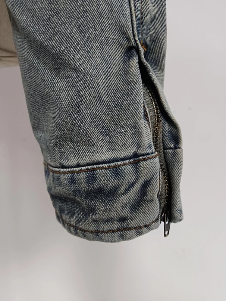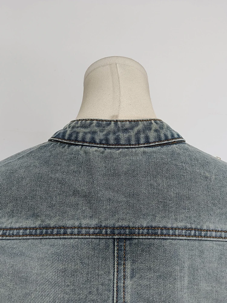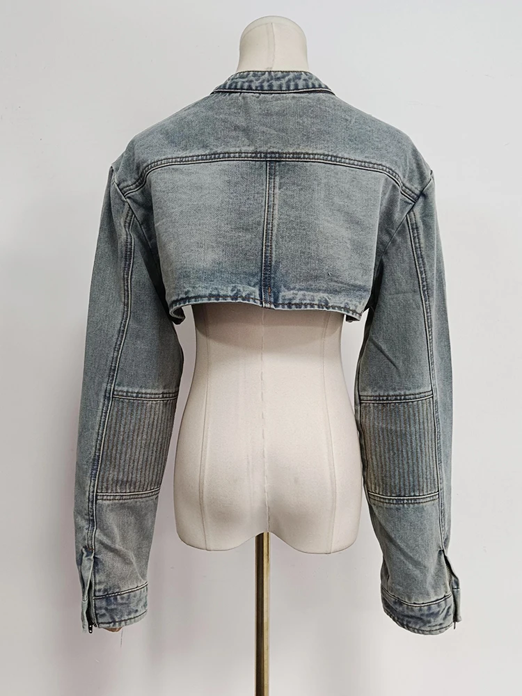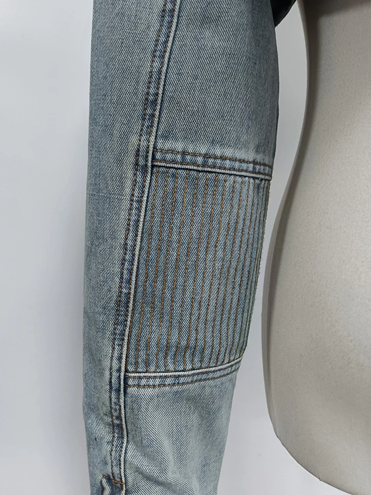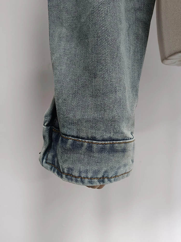 Sexy Hollow Out Denim Two Piece Set Long Sleeve Splicing Buckle Set for Women
