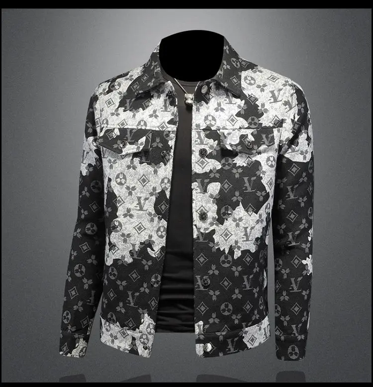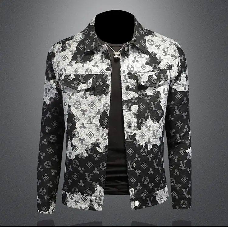 Men's spring and autumn denim jacket ins middle-aged and young casual jacquard jacket European station men's trendy top