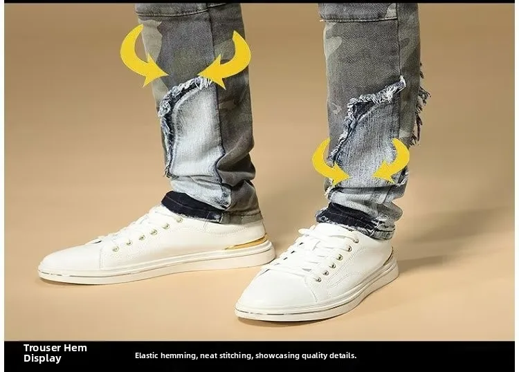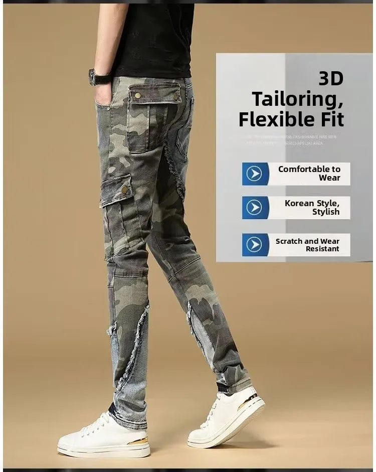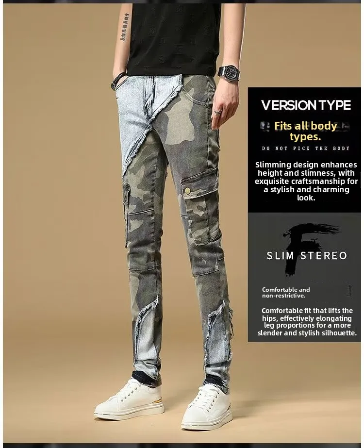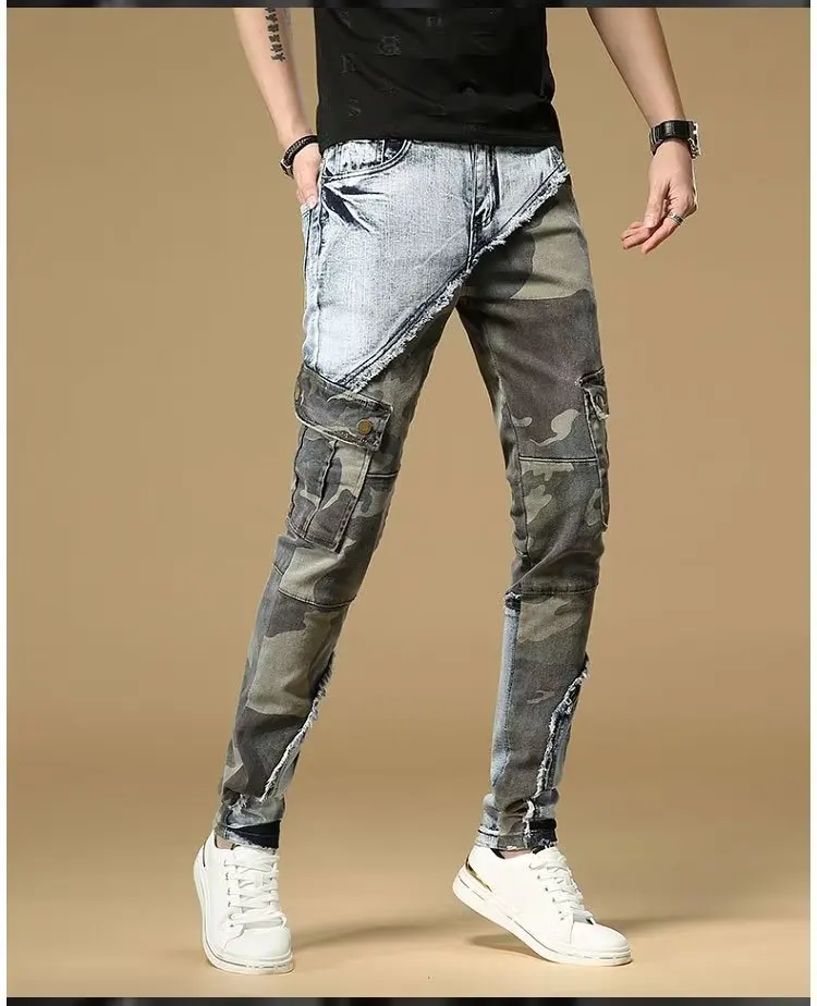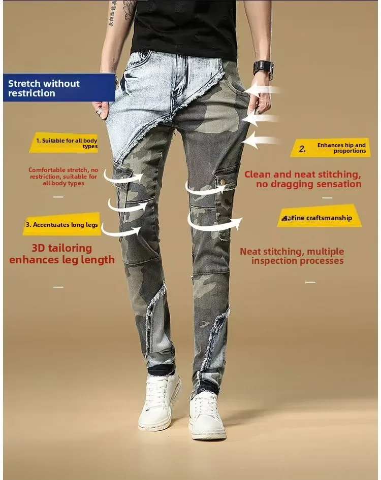Men's Slim Fit Camouflage Jeans Casual High Stretch Denim