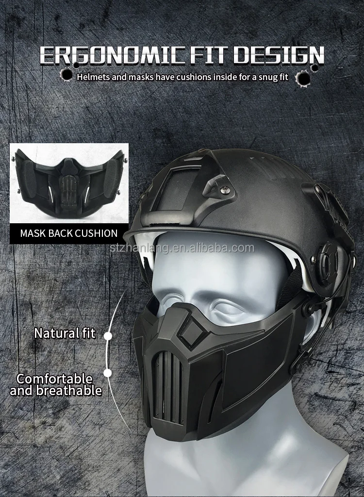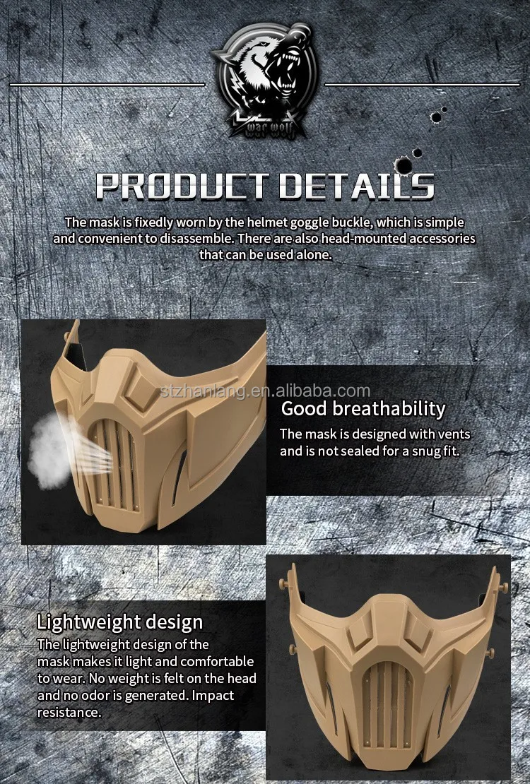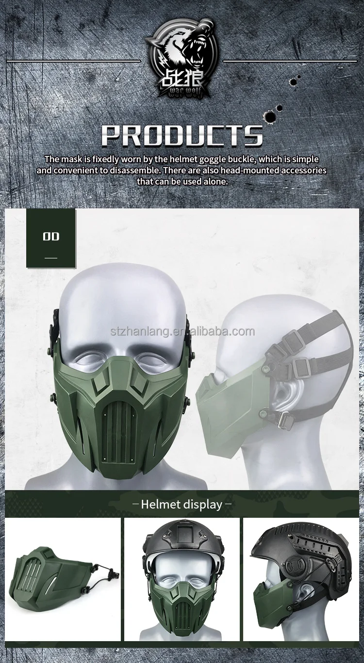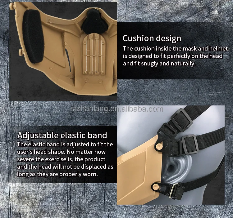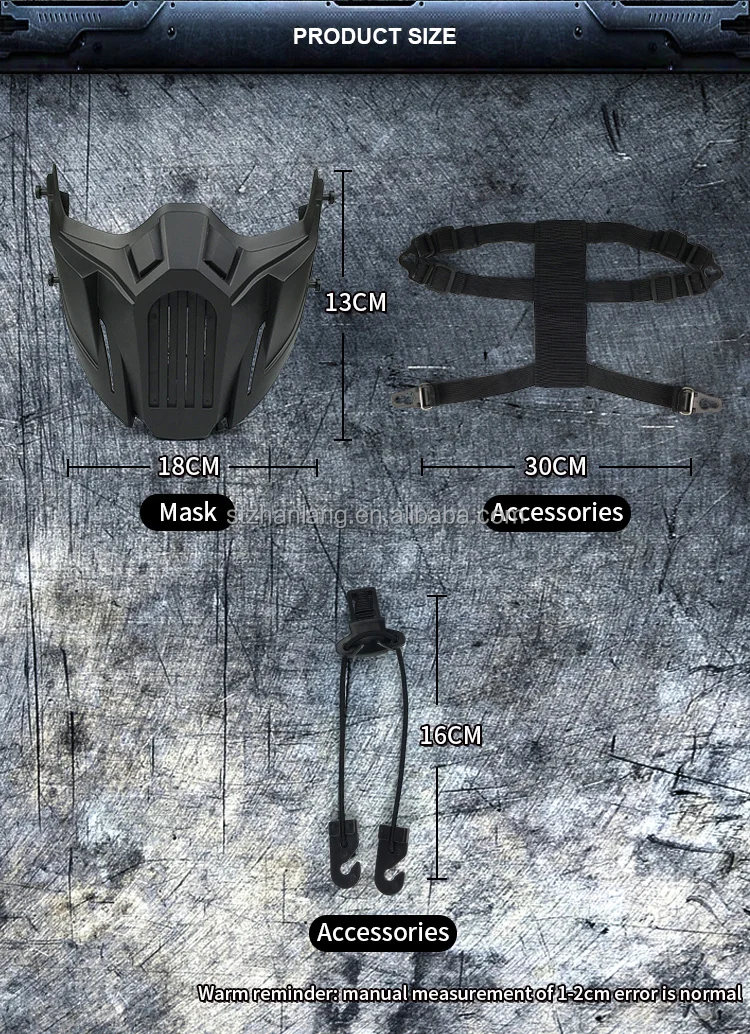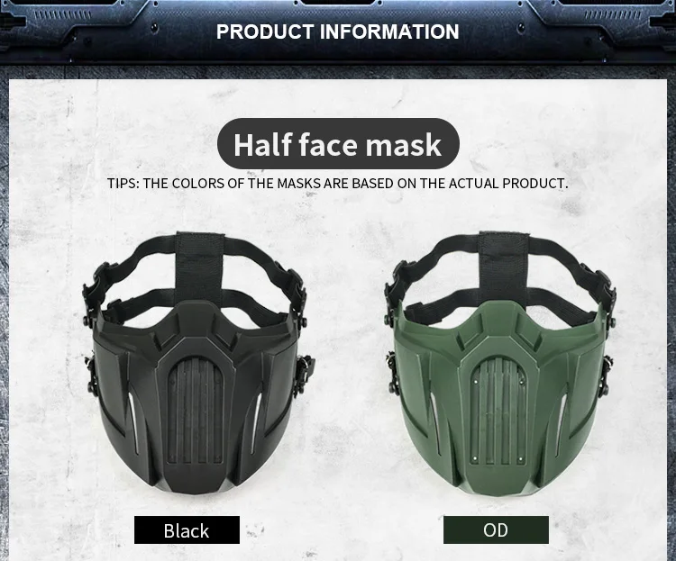 Features: 1.Ergonomic design, well protect the Face from the impacting of Arrows, Paintball. 2.Filter inside, Guarantee the Breathe of clean air. 3.Adjustable elastic band to suit different head circumferences. 4.Light weight, comfortable to wear.