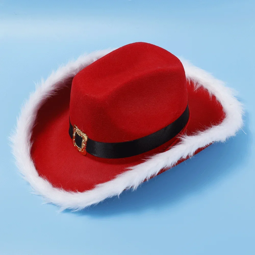 Fashion Santa Claus Party Christmas Luminous Cowboy Hat Western Red Felt Hats Wide Brim Cowgirl Hat Jazz Hat for Women Men