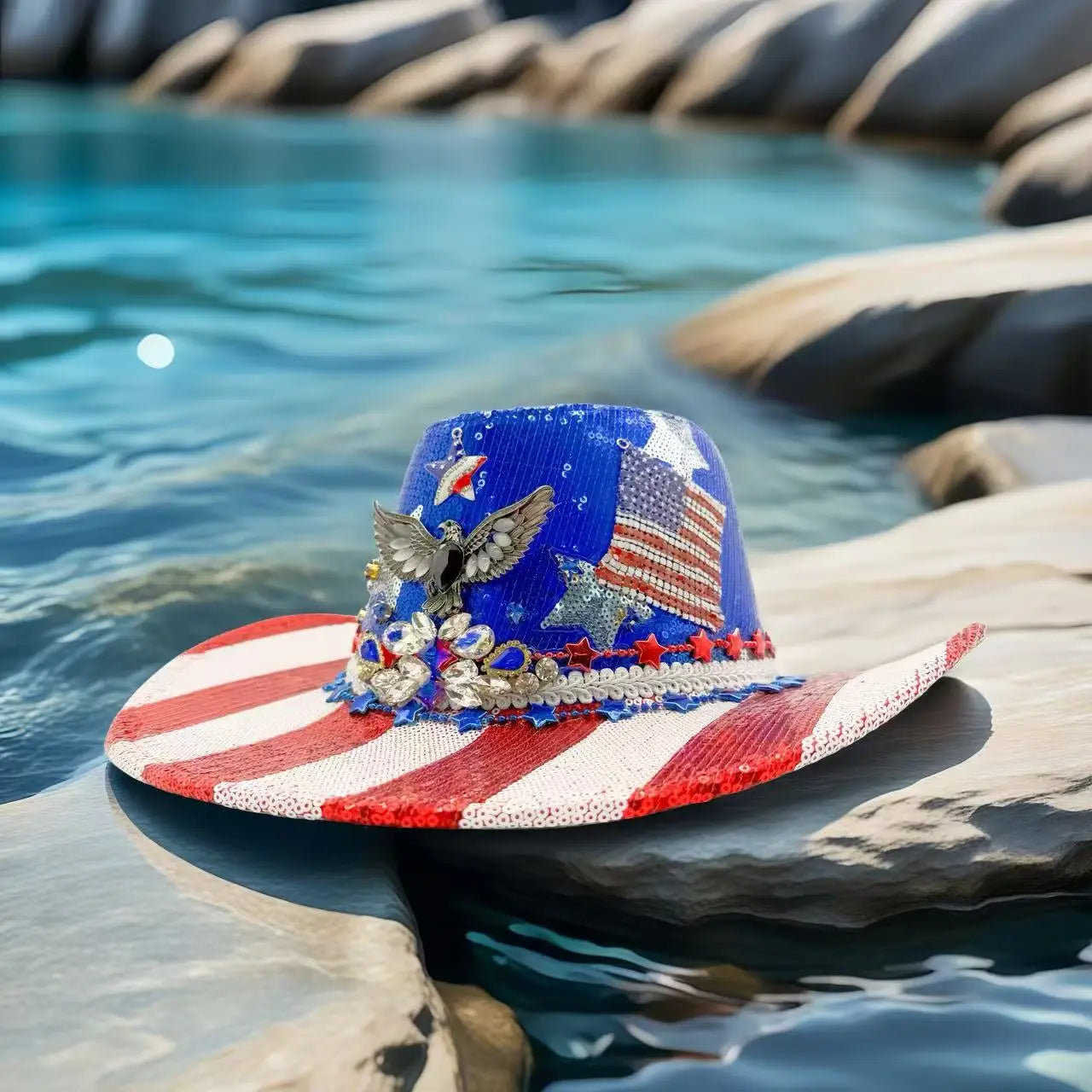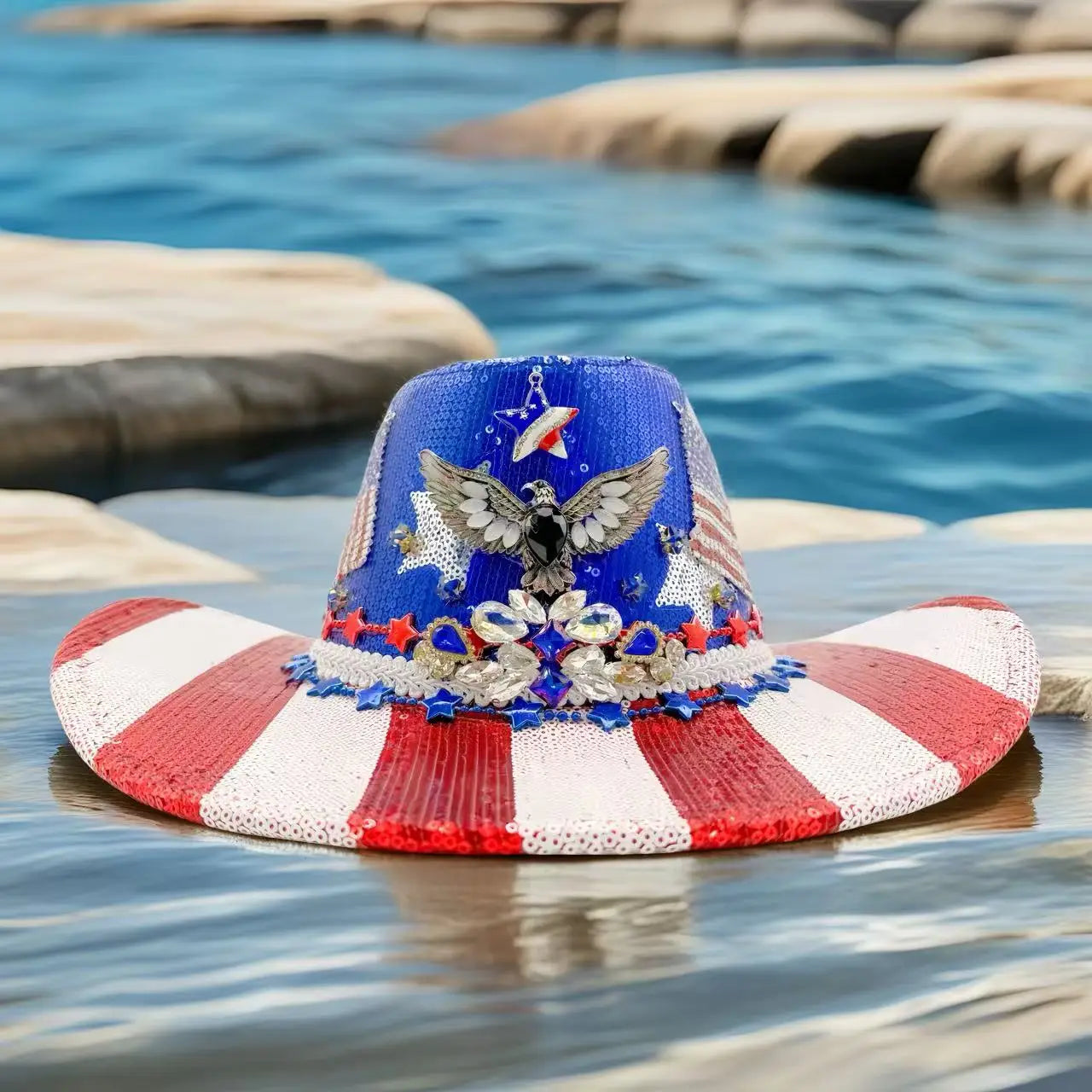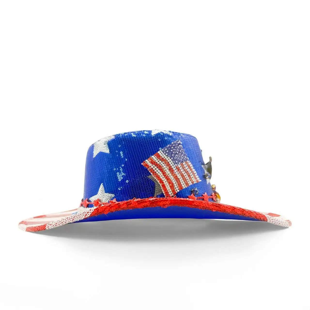 HongLuan Western Blue Disco Felt Cowboy Hat Rhinestone Woman for Cowgirl