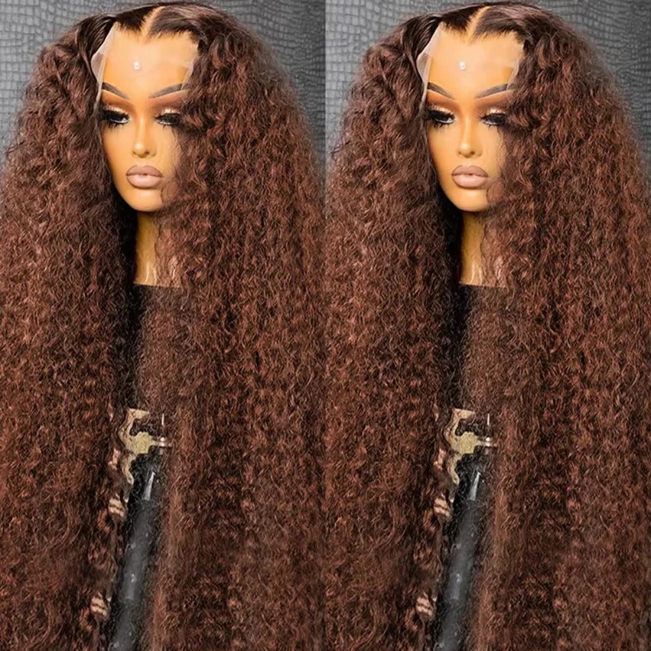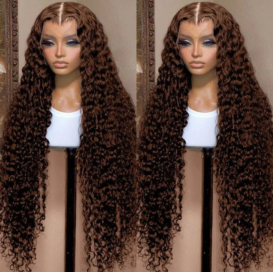 Chocolate Brown 13X6 Human Hair Wigs Hd Lace Frontal Wig Deep Wave Lace Front Wig Curly Colored PrePlucked Brazilian Wig 30 Inch