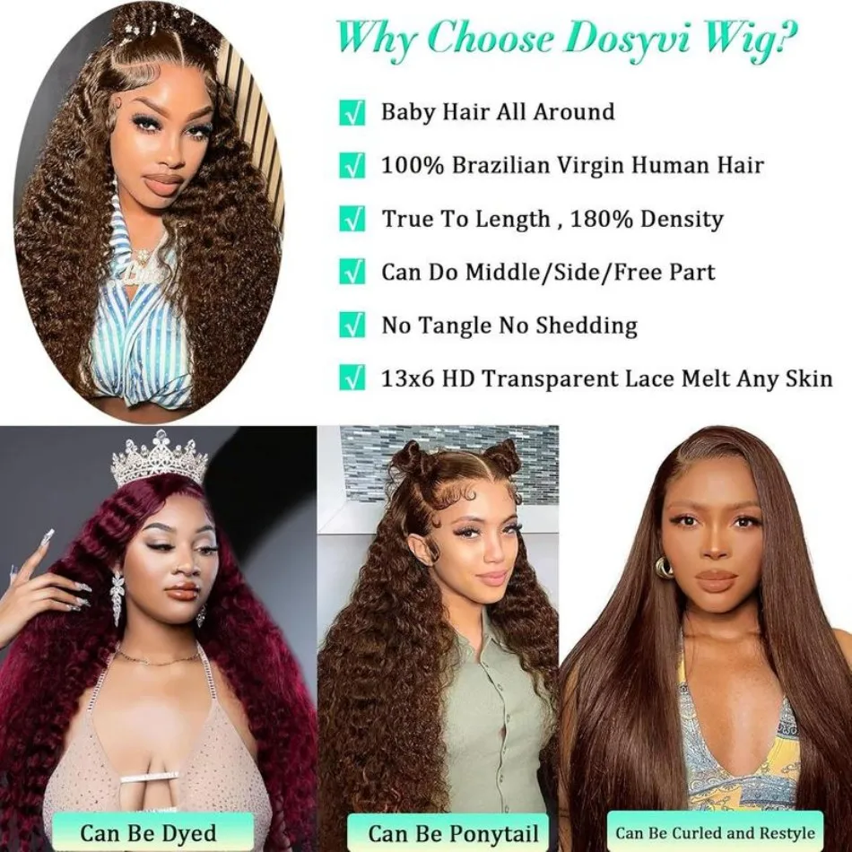 ❤【Brown Human Hair Wig Advantage】: 13x6 Chocolate Deep Wave Lace Frontal Wig , Which Will Lay More Undetectable On Your Skin To Look Like Your Real Scalp. Plus, You Will Receive Five Wonderful Tools. Suitable for Party, Birthday, Travel, Celebration, Wedding, Graduation, And Daily Life.