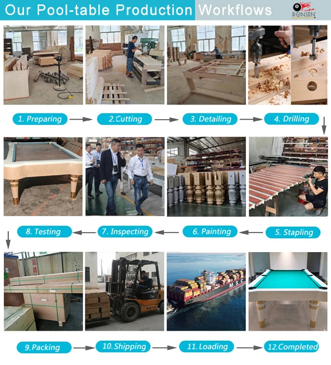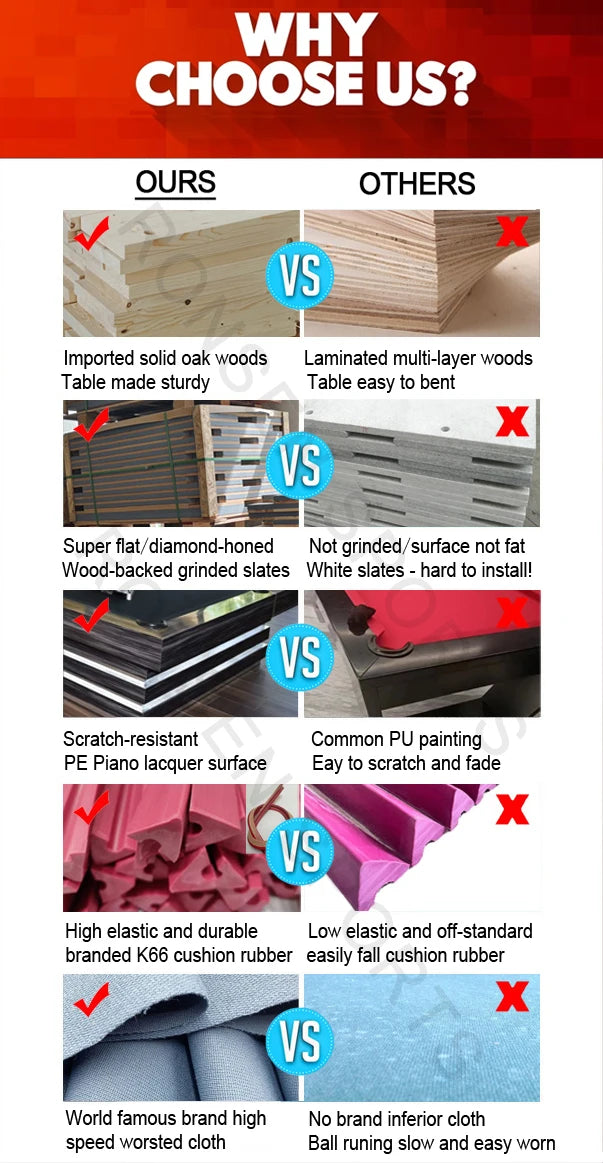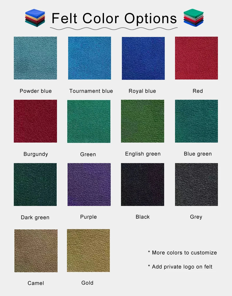 - - - Our main materials includes solid wood, slates, rubber cushion, felt/cloth, and accessories etc.