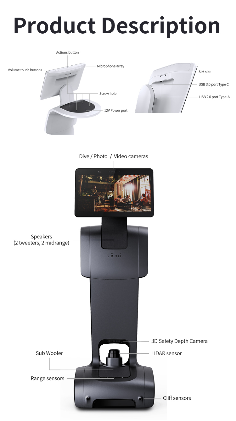 Temi V3 Most Popular Service Restaurant AI Talking Welcome Guest Explains Front Desk Reception Robot