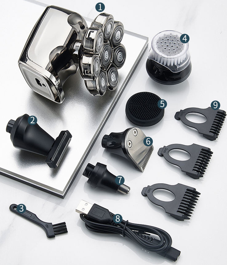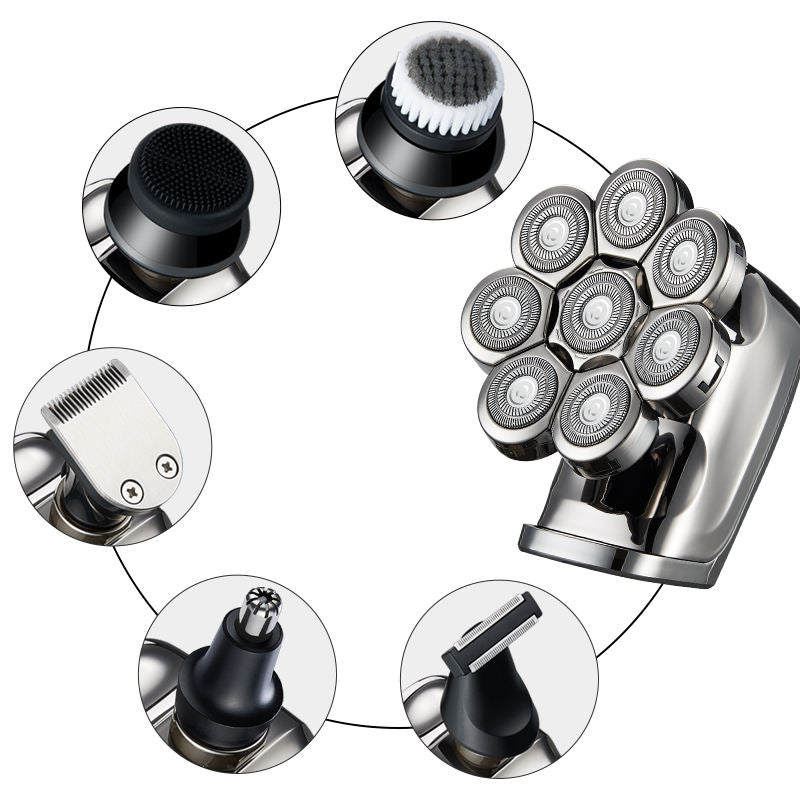 6 In 1 USB Upgrade Bald Grooming Kit Wet/Dry 8 Heads Shaving Machine Kit Electric Razor whierless shaver for men