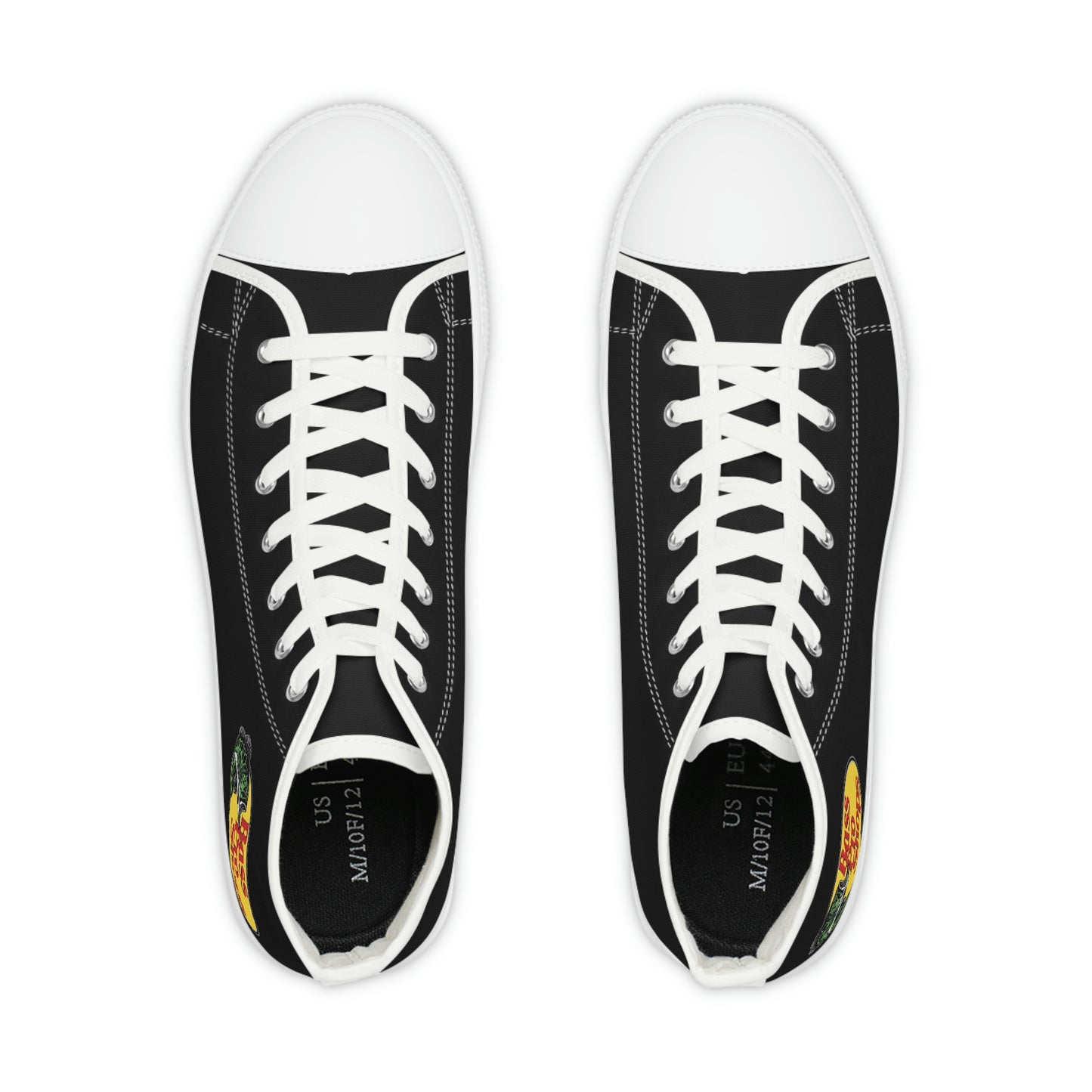 Made with breathable polyester canvas and featuring hi-poly deodorant memory foam insoles, these high top sneakers for men bear all the marks of an awesome shoe. Choose between black or white sole and laces, and enjoy the silver metal eyelets along with the lace-up closure.