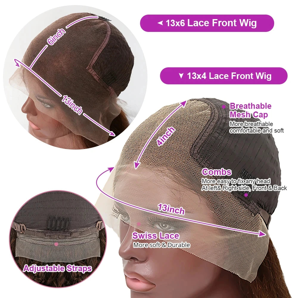 Chocolate Brown 13X6 Hd Lace Frontal Wig Deep Wave Human Hair Wigs 100% 250 Density Colored Pre Plucked Brazilian Wigs For Women