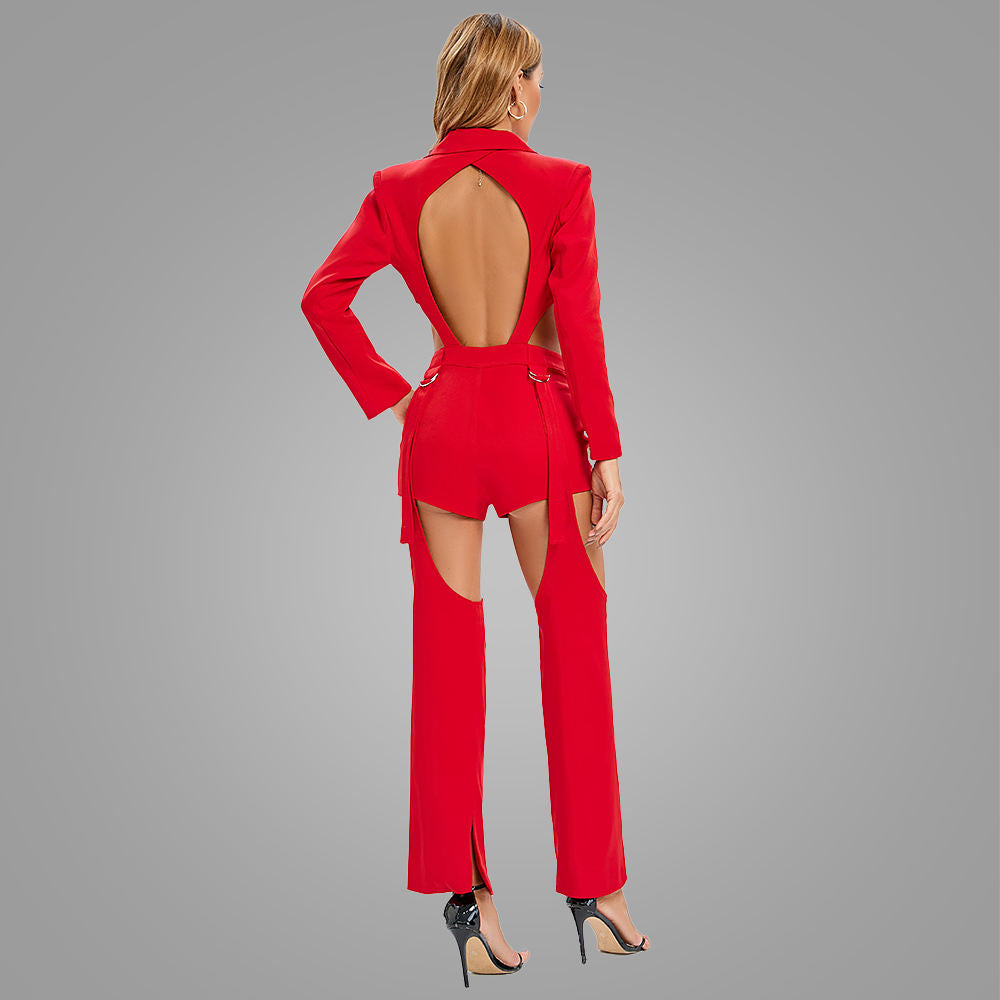 Elegant Wear Women Two Piece Set Backless Cut Out Blazer Set