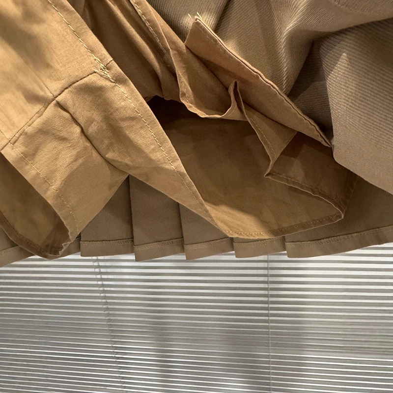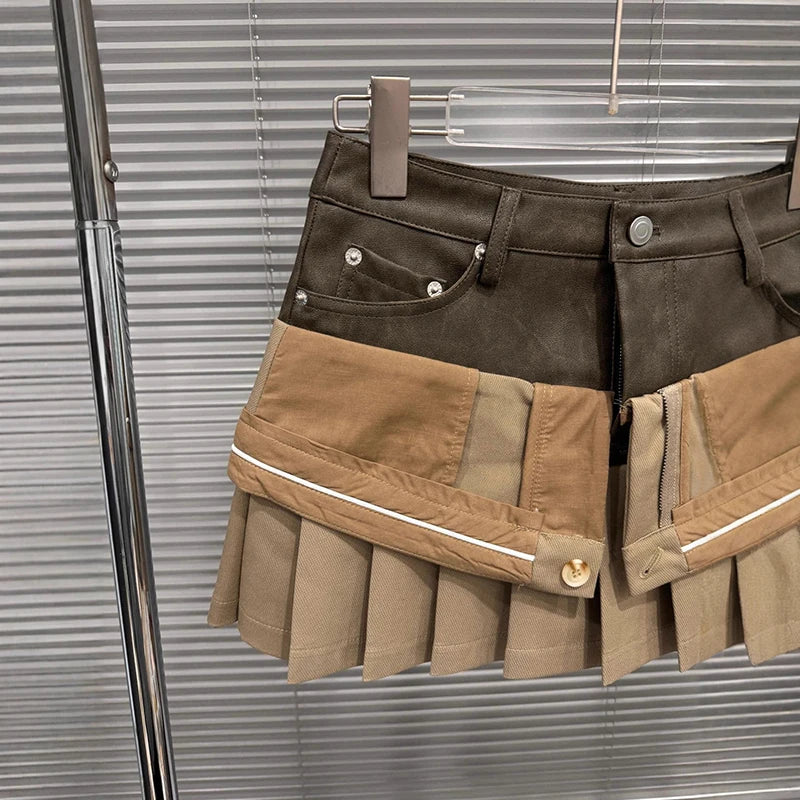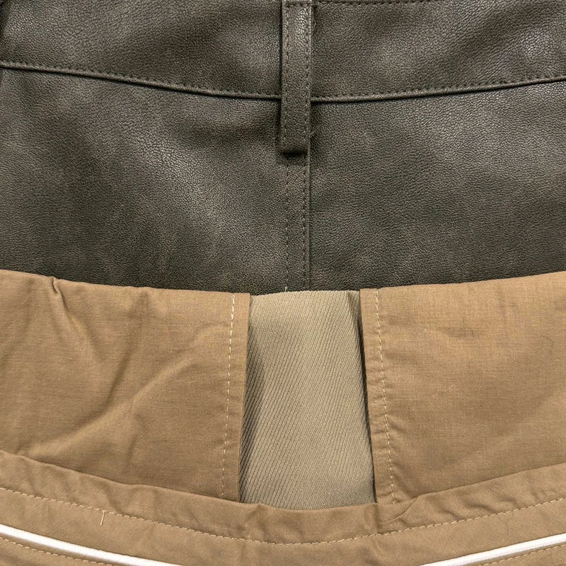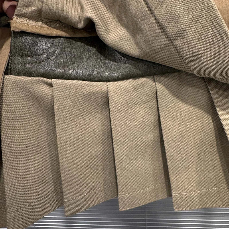 Autumn Winter New Niche Fashion Two-Piece Design Leather Patchwork Short Skirt For Women Pleated Skirts