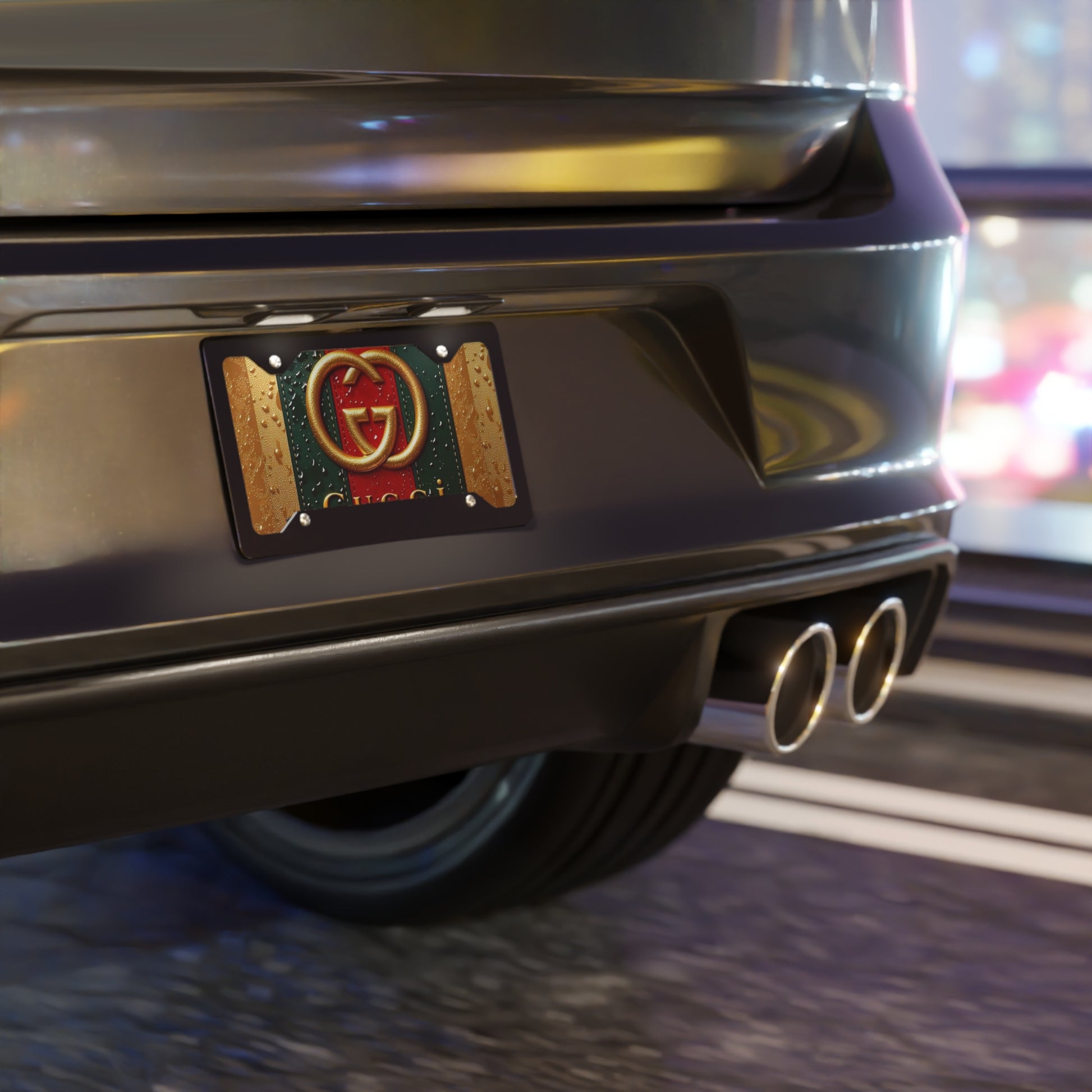 Bring bold, fashion-house energy to your ride with this eye-catching aluminum vanity plate. The glossy, high-color print sits on a sturdy white front and silver backing, so the design keeps its vibrancy through sun and rain. Pre-drilled holes make it easy to attach to any standard mounting points, and the slim, lightweight 12" × 6" profile adds attitude without weight. Use it to personalize a daily driver, dress up a garage wall, or add a statement piece to a car show display — it looks polished whether mounted on a bumper or displayed indoors.