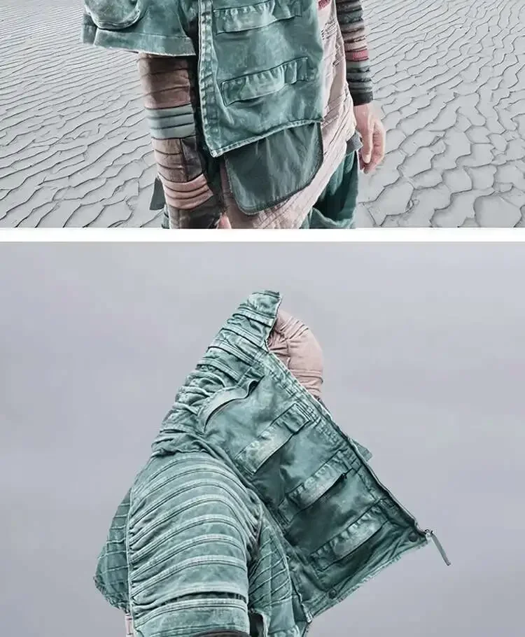 Men and Waste Soil Style Asymmetric Deconstruction Pleated Jacket Futuristic Washed Short Coat Male