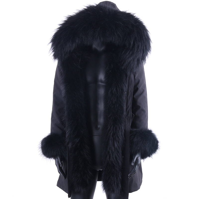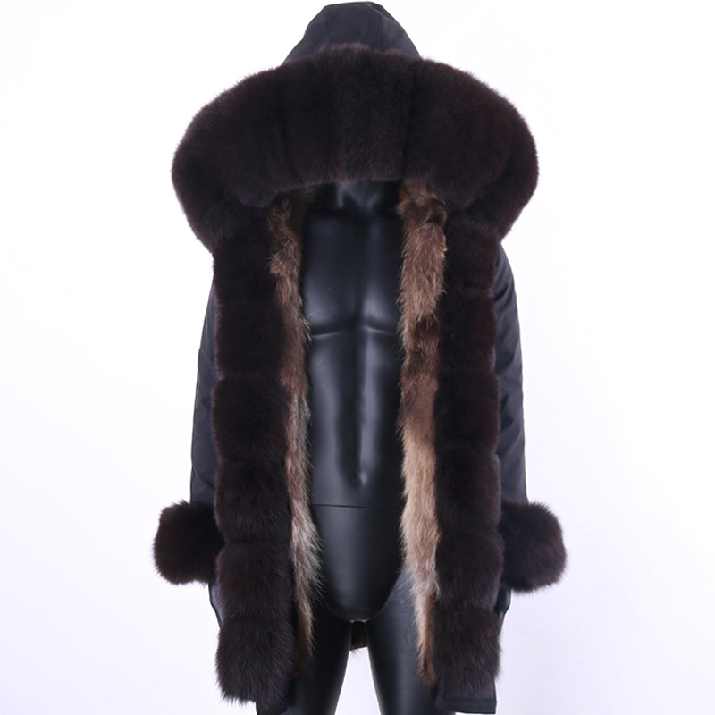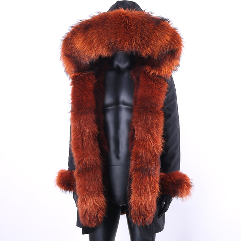 Mens DOPiFiED Fashion Real Fox Fur Coat Parka Winter Fox Fur Collar and Fox Fur Coat Warm Hood
