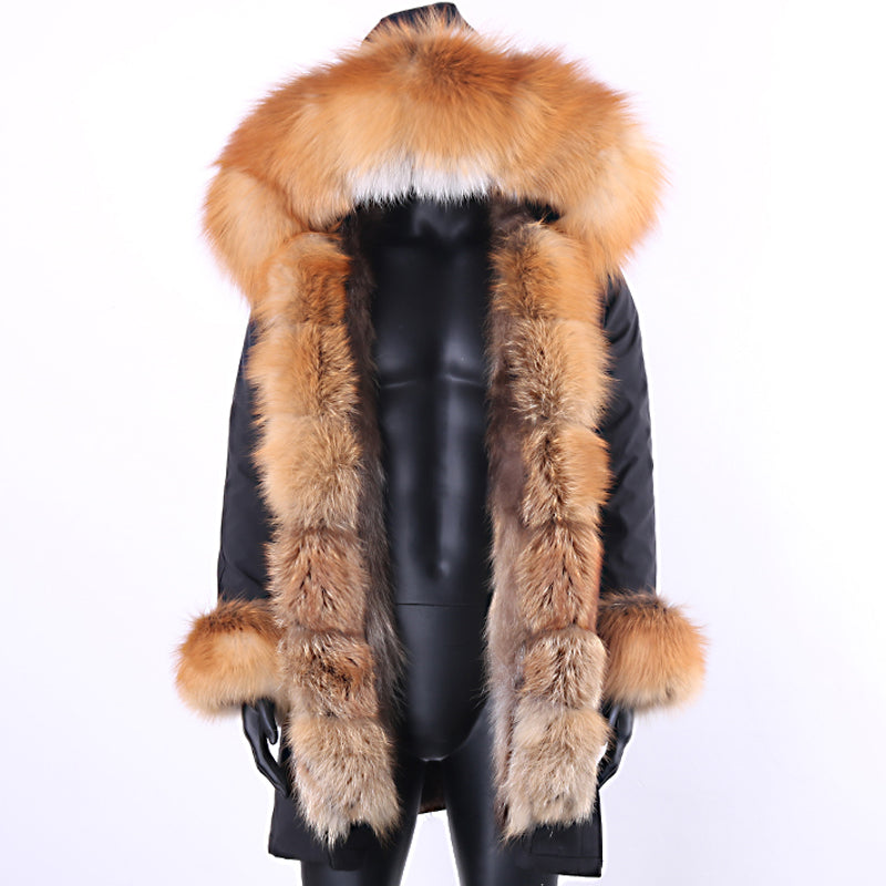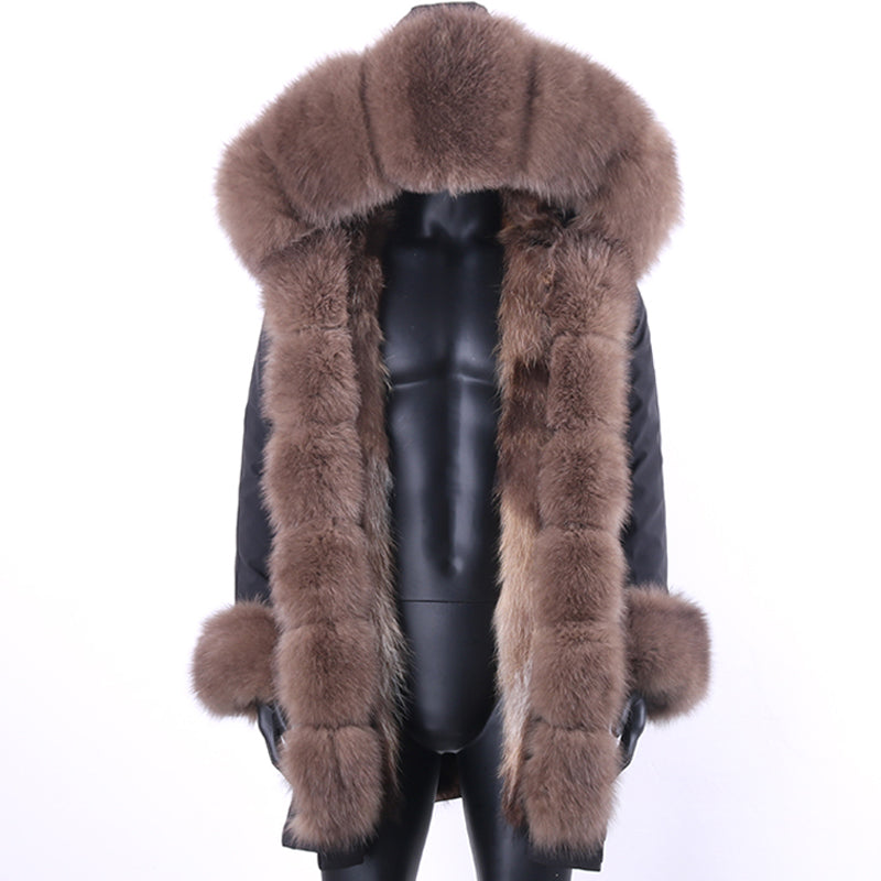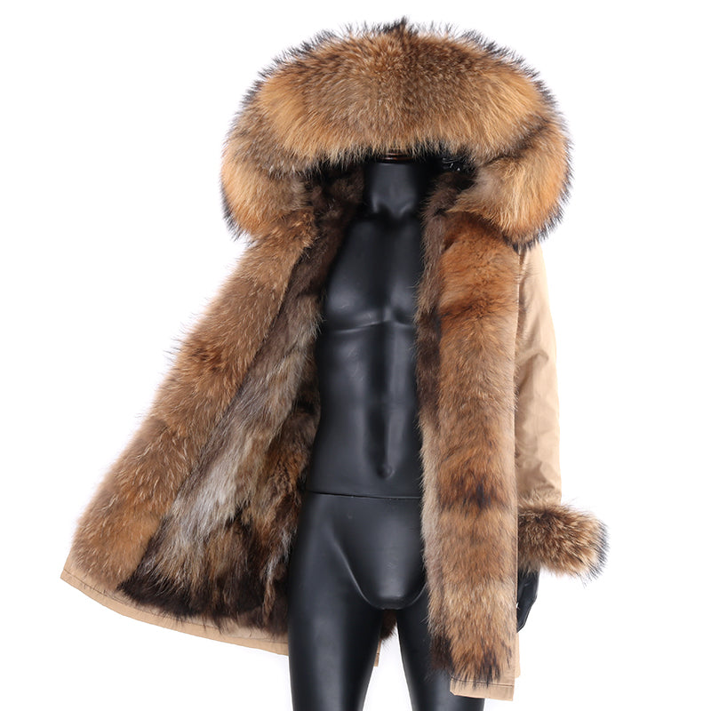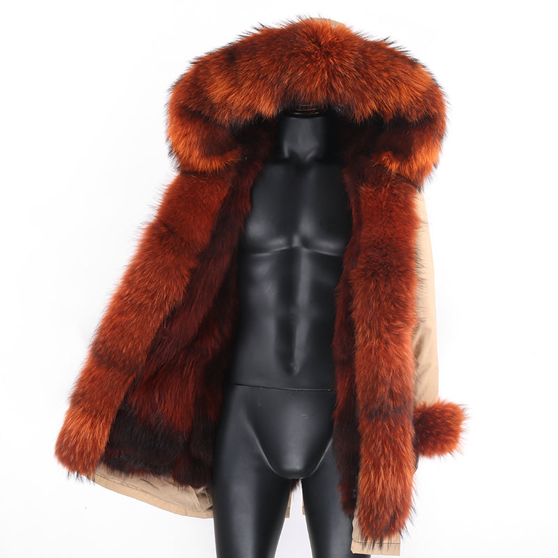 Men Fashion Real Fox Fur Coat Parka Winter Fox Fur Collar coat / Warm Hood