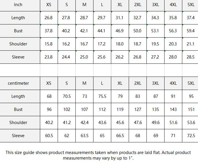 This size guide shows product measurements taken when products are laid flat. Actual product measurements may vary by up to 1".