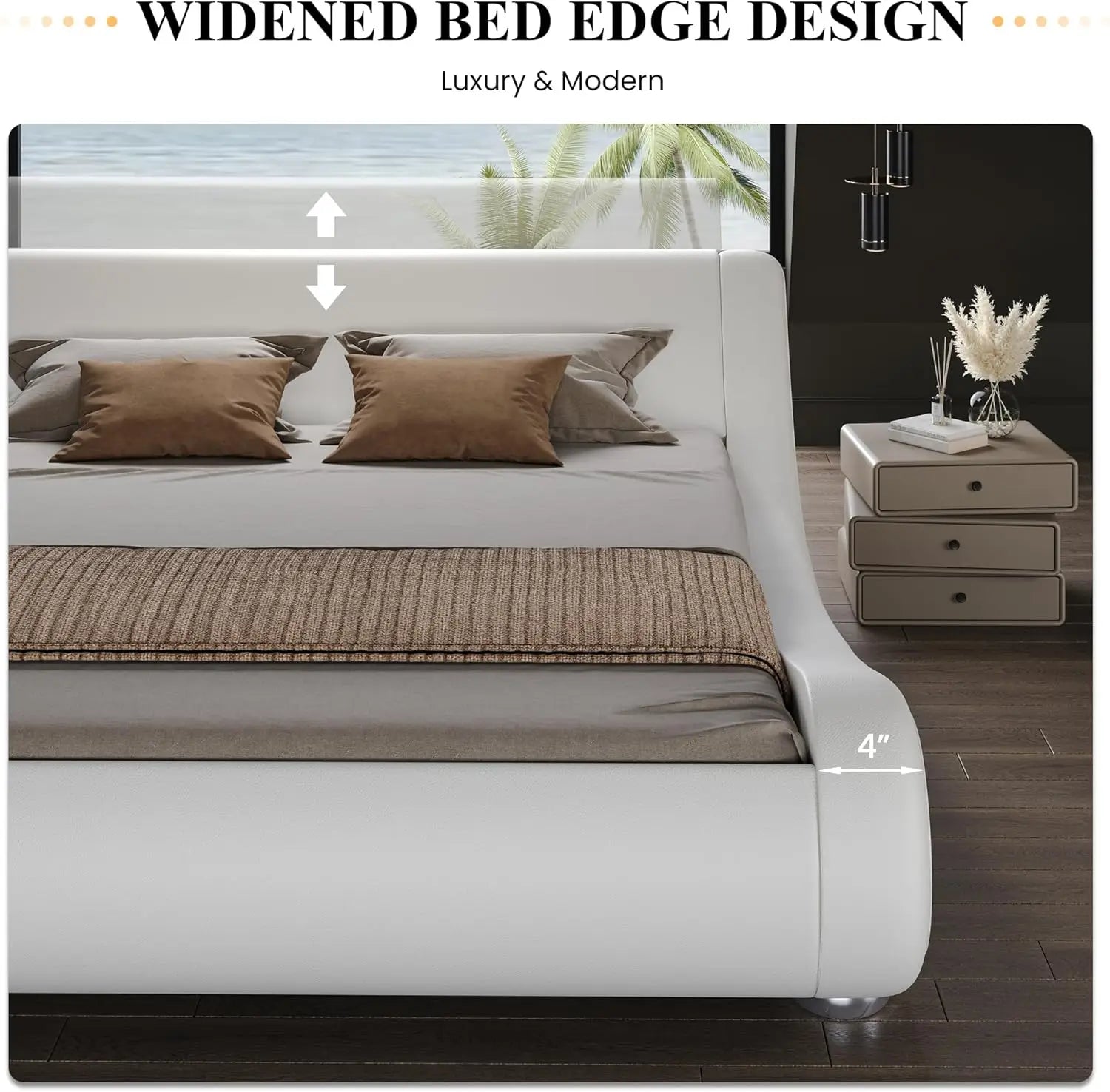 - UNIQUE MODERN: The wave platform bed frame has a streamlined design along with a curved headboard which makes your room a contemporary and futuristic aesthetic
