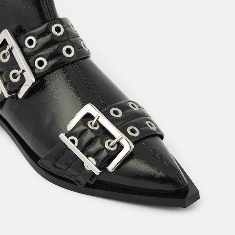 Sharp pointed thick heel belt buckle motorcycle boots side zipper low heel short boots