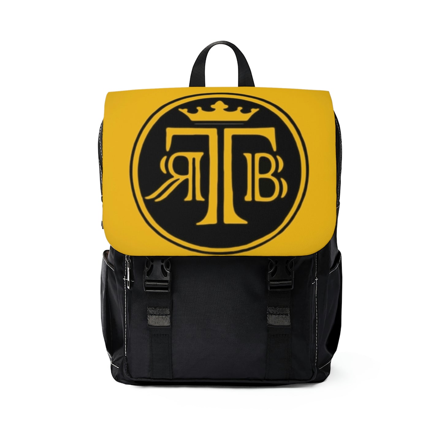 Casual Rare Breed backpack in a classic shape with a front flap design. It is made of durable Oxford canvas. It has two slip interior pockets and one laptop sleeve in the main compartment, a front zipper pocket, and two side pockets.