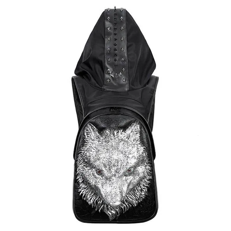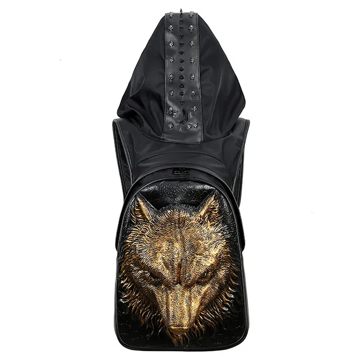 Unisex Waterproof Thicken Leather Backpack - 3D Rivet Embossed, Hooded Design, Spacious Laptop Rucksack for Daily & Travel