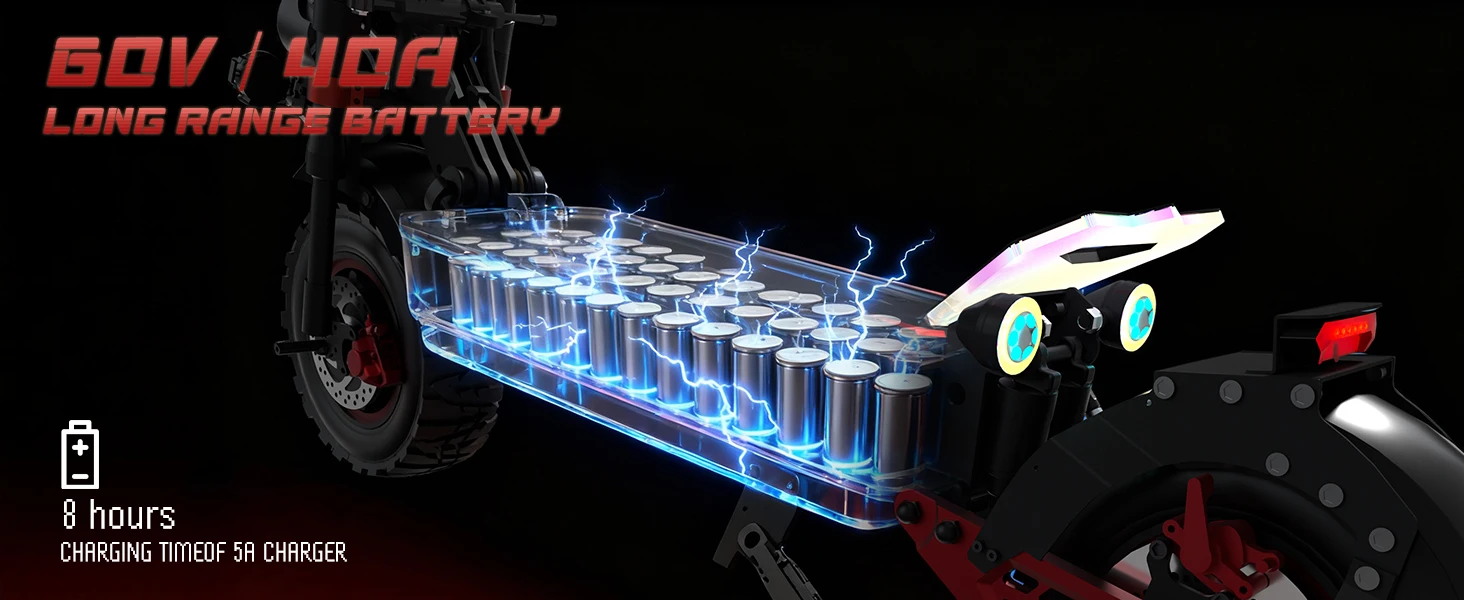 2. Quick - Release Battery: Convenient & Secure60V 40Ah large - capacity battery with quick - release interface. Charge flexibly. Password - locked battery compartment prevents theft. Easy battery swap and maintenance make long trips stress - free.