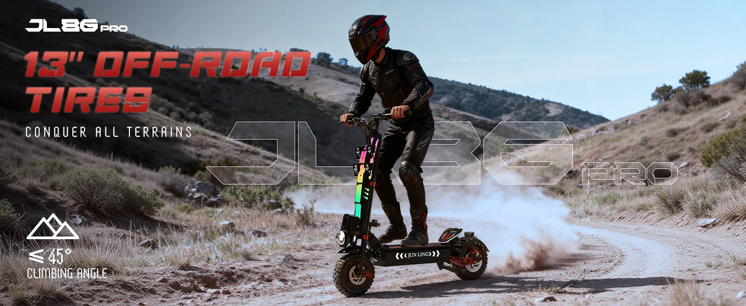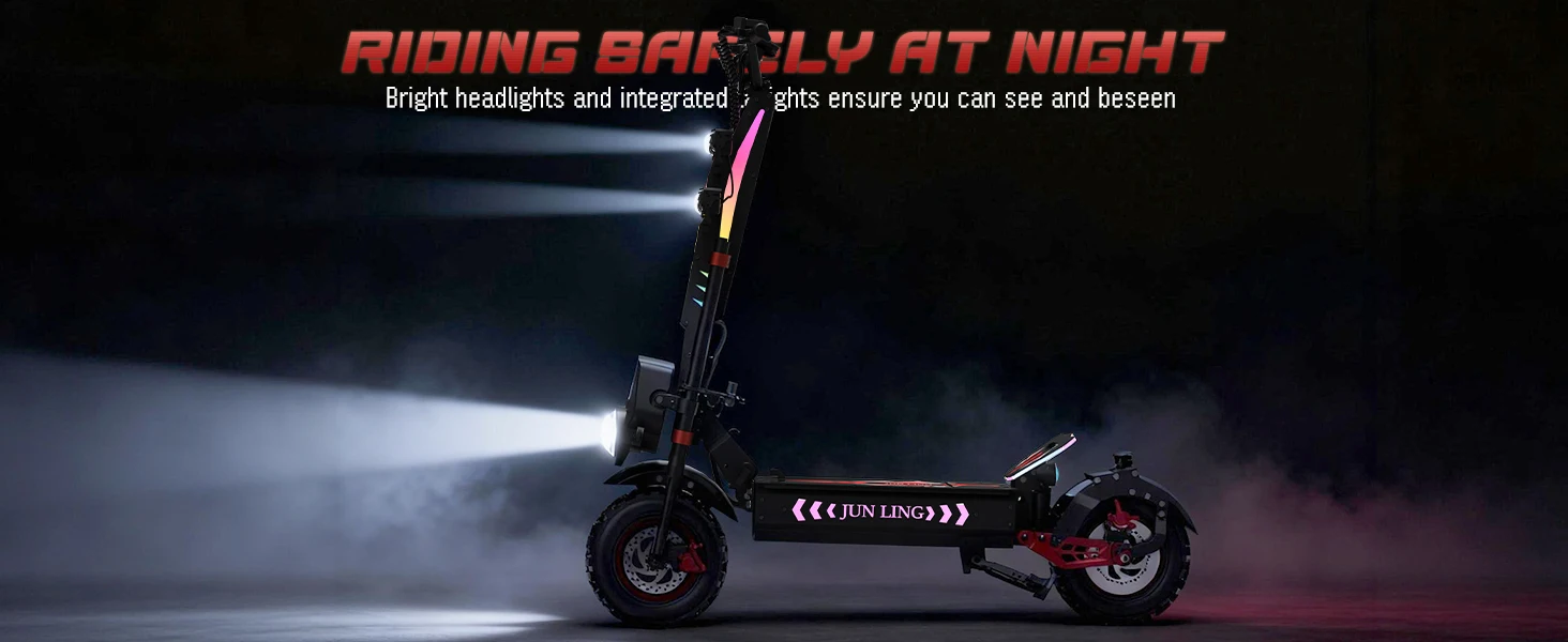 4. Foldable & All - Terrain: Fit Various ScenariosLightweight aluminum frame with dual folding locks for easy carrying. Ideal for urban commuting, off - road trips and nighttime cruises. Anti - slip pads, 4 - piston EABS brakes and adjustable spotlight conquer all terrains.