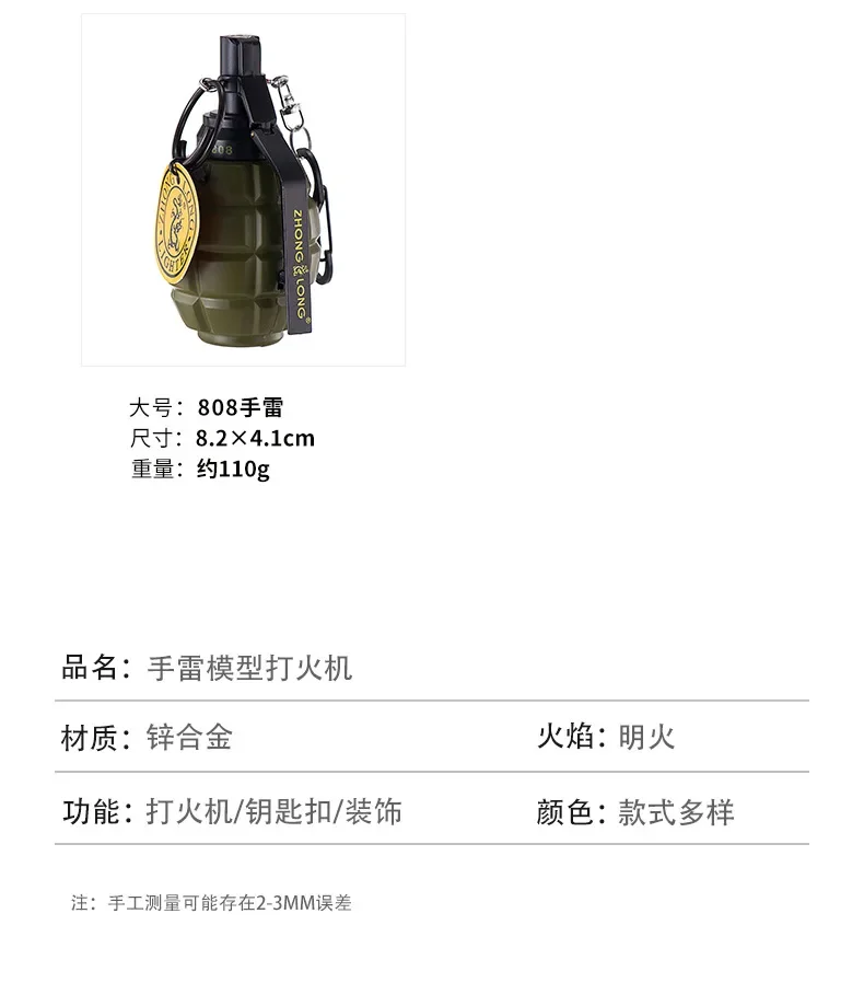 Grenade Design Windproof Jet Flame Butane Gas Lighter Outdoor Keychain Personalized Ornament Lighters Smoking