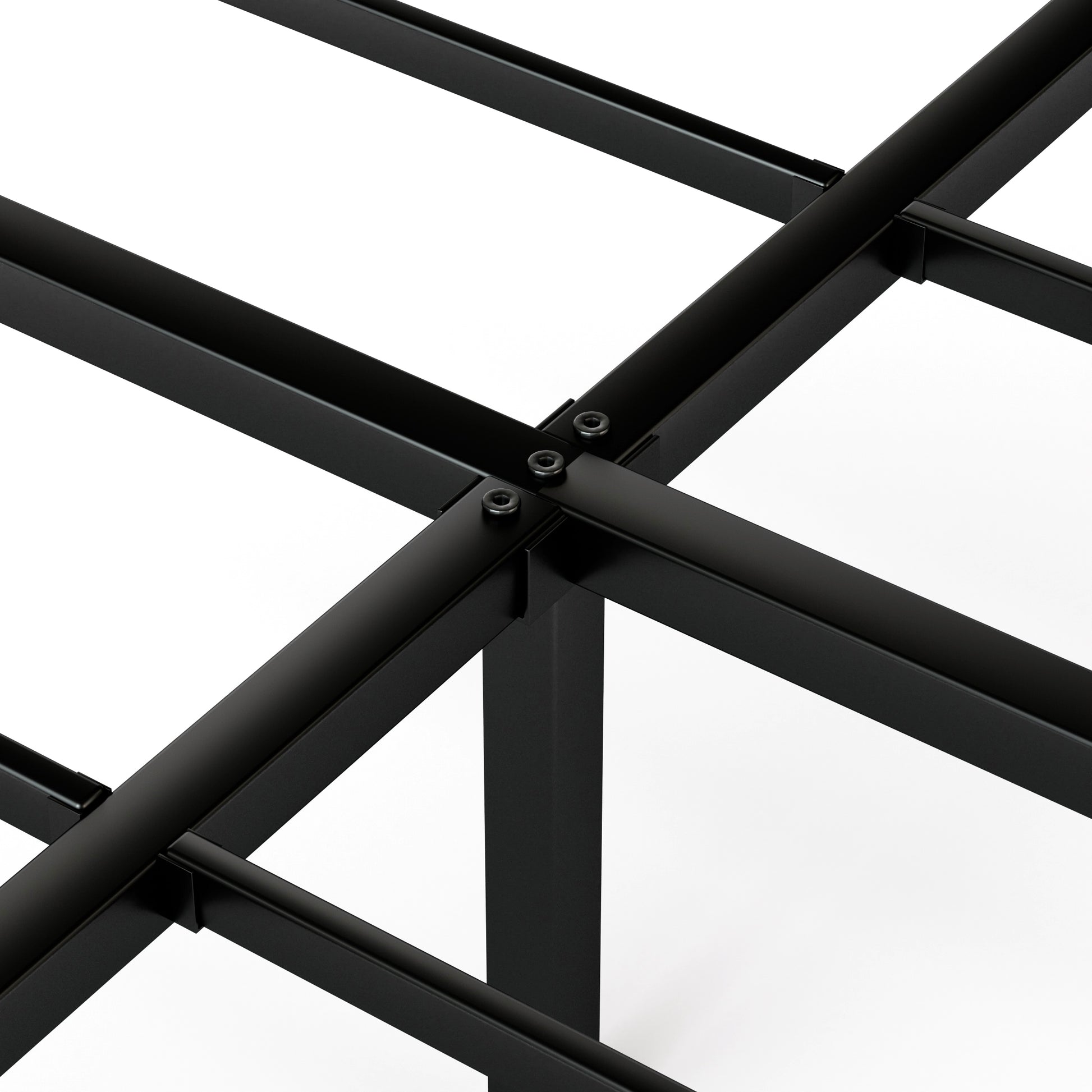 Strong metal frame:The perimeter frame is 40mmx20mm iron tubing, the cross-shaped core frame is 30mmx30 mm iron tubing and the 9 support legs are 25mmx25 mm iron tubing. Each connecting part is a tested design to make the Queen size bed frame stronger and more durable.