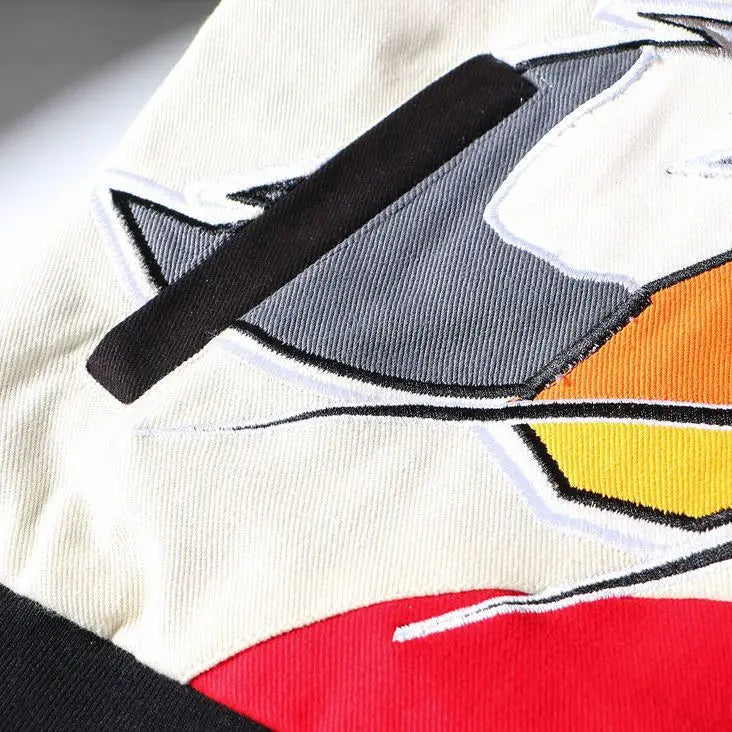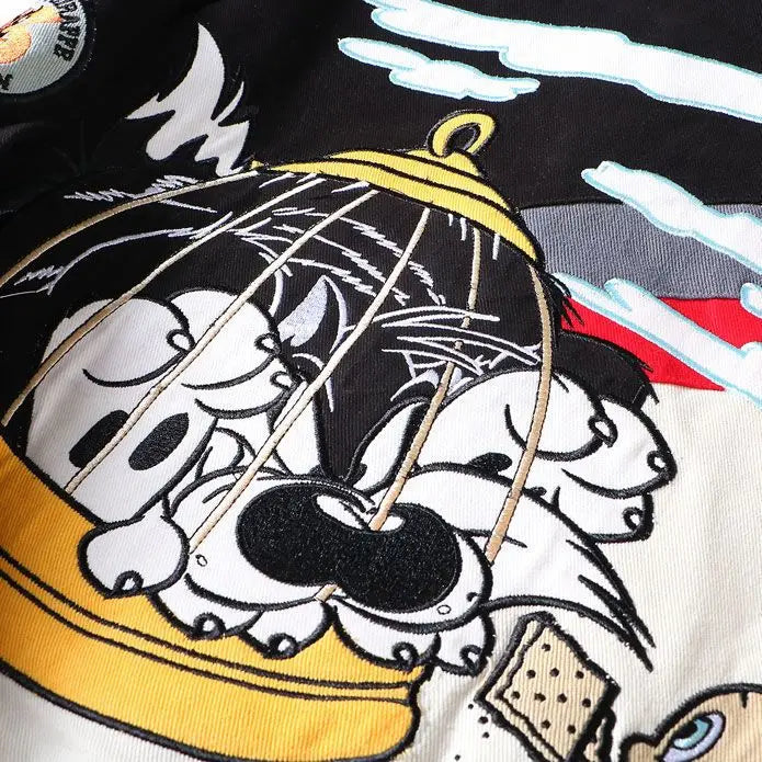 Men's High Street Embroidered Anime Motorcycle Jacket Pure Cotton, Zipper, Stand Collar