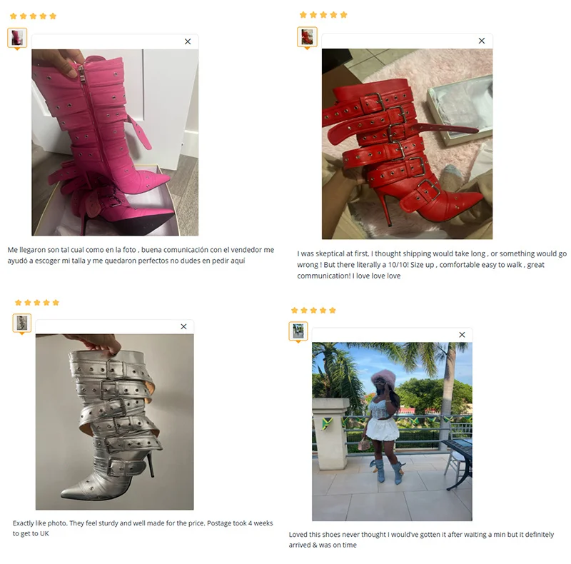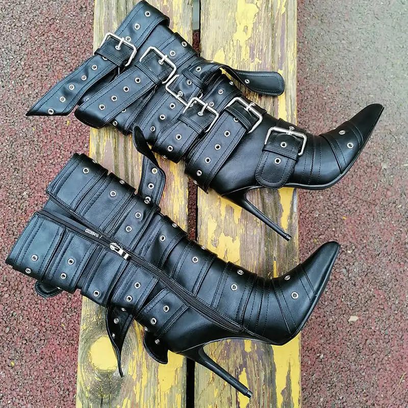Onlymaker Women Pointed Toe Buckle Strap Mid-Calf Boots Thin High Heel Lady Zipper Stiletto