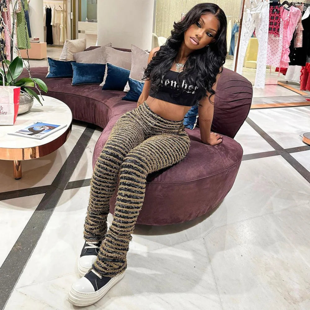 Color Block Stripes Pants Women High Waist Loose Sweatpants Women's Bodycon All-match Summer Trouseres