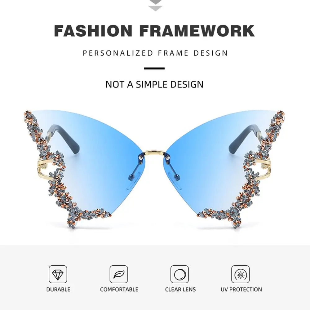 Luxury Eyewear Diamond Butterfly Sunglasses for Women Ladies Shades