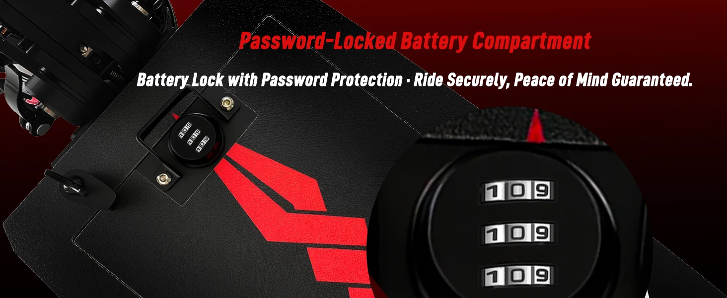 Quick - Release Battery: Convenient & Secure60V 40Ah large - capacity battery with quick - release interface. Charge flexibly. Password - locked battery compartment prevents theft. Easy battery swap and maintenance make long trips stress - free.