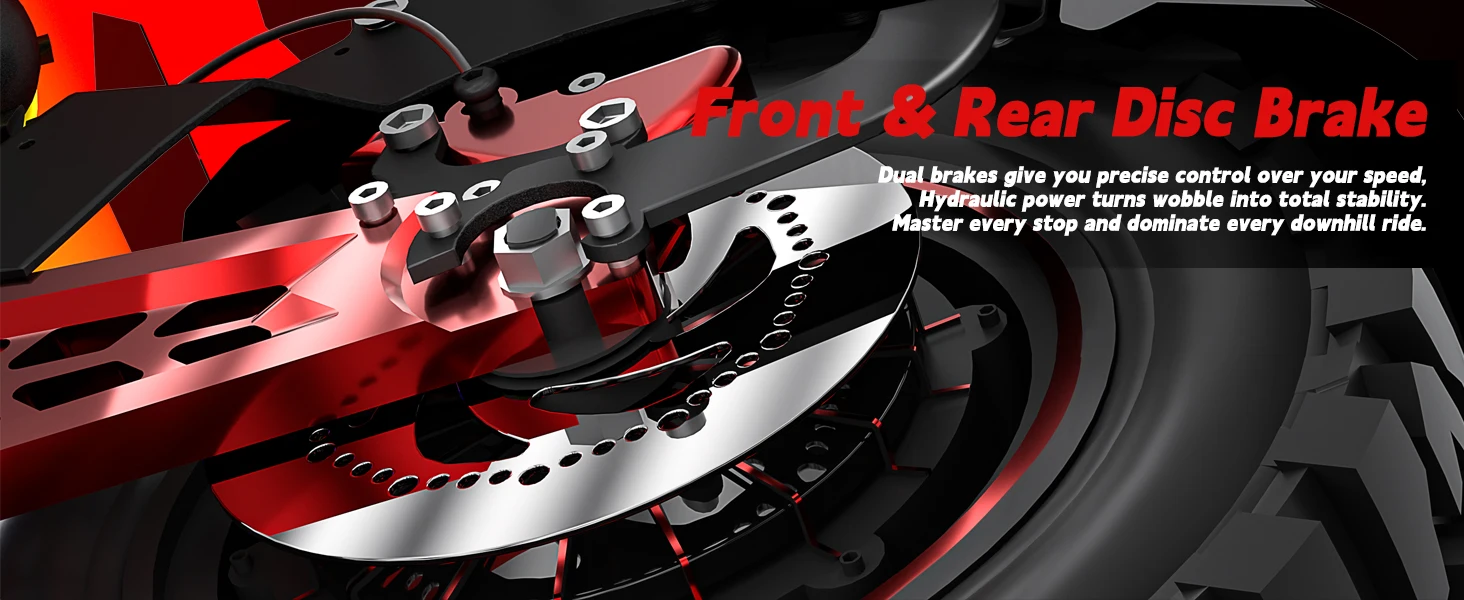 Foldable & All - Terrain: Fit Various ScenariosLightweight aluminum frame with dual folding locks for easy carrying. Ideal for urban commuting, off - road trips and nighttime cruises. Anti - slip pads, 4 - piston EABS brakes and adjustable spotlight conquer all terrains.